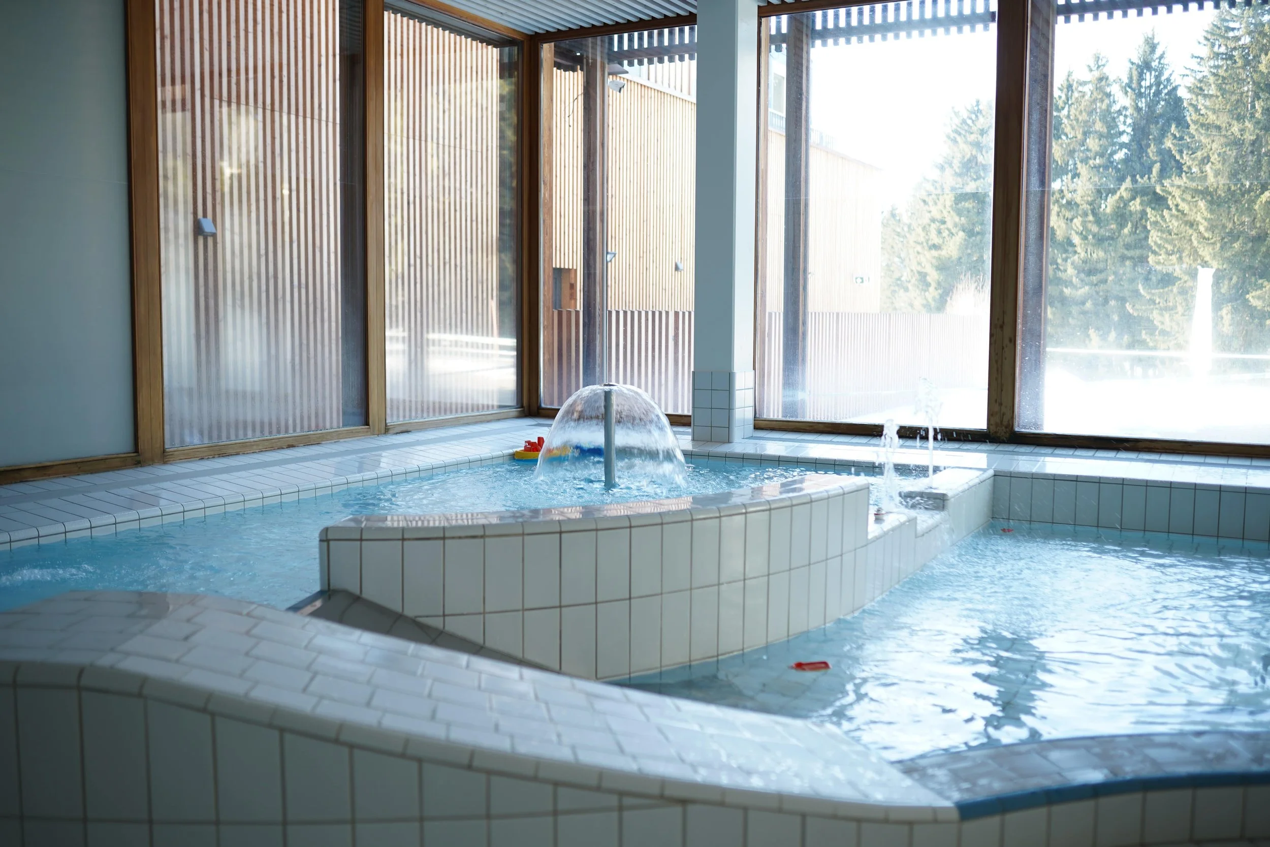 Unsere Jungs hatten riesigen Spass. Das Kinderbecken ist etwas tiefer und mit Wasserbällen ausgestattet, perfekt zum Spielen. Das Babybecken überzeugt mit liebevollen Details: kleine Rutschbahn, Giesskannen, Schiffe und weiteres Spielzeug. Das Aussenbecken ist schön warm, bietet eine tolle Aussicht auf die Berge und eine Sprudelzone zum Entspannen. Die Rutschbahn ist richtig toll – das Wasser etwas kühler, aber definitiv ein Highlight.