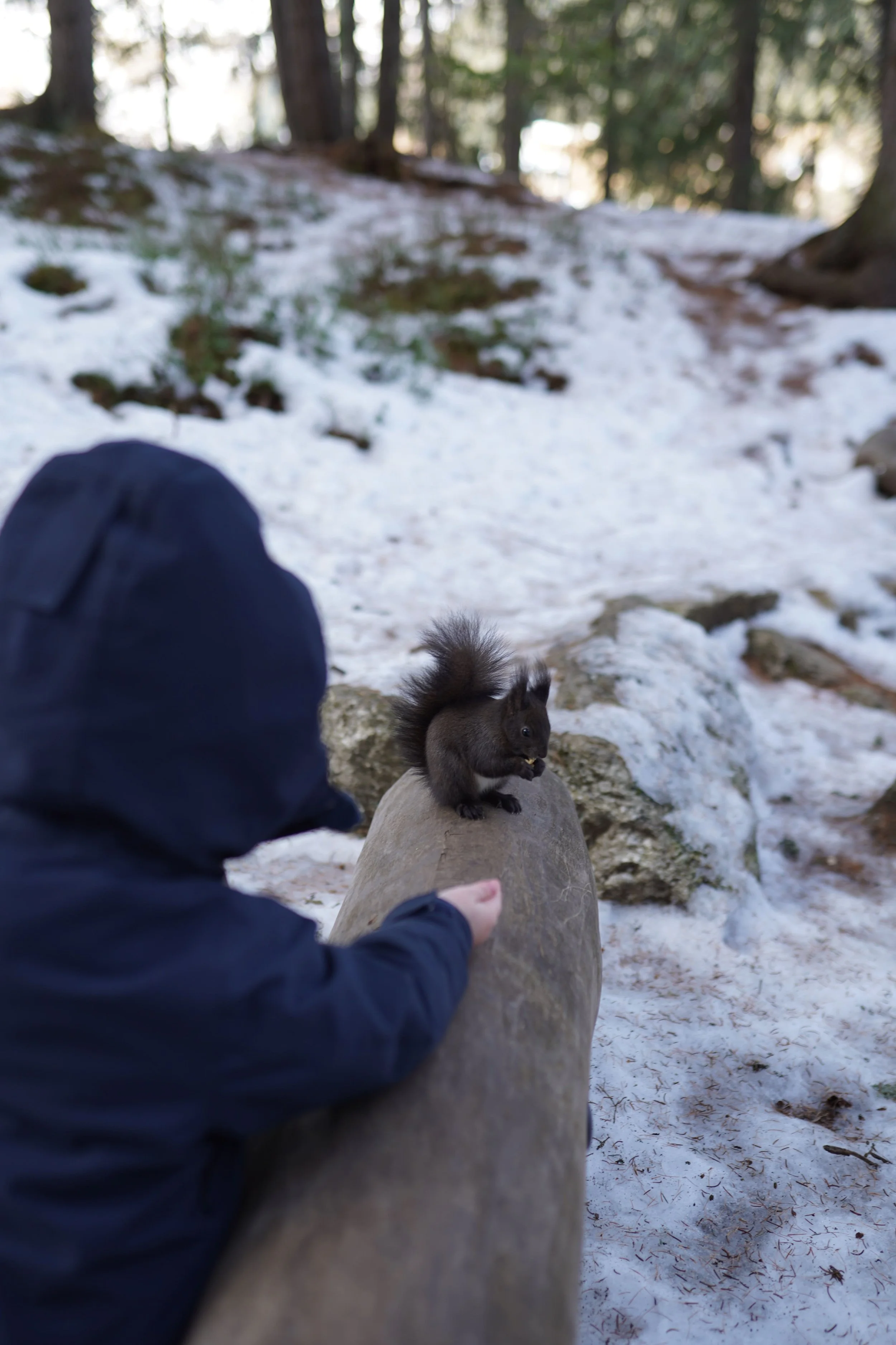 Familienausflug in Davos: Eichhörnchen füttern am Davosersee
