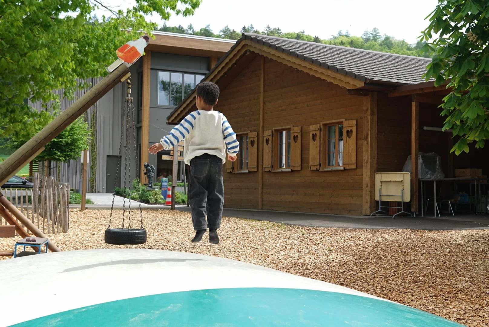 Der Spielplatz auf dem Eichberg ist ein echtes Highlight für Kinder. Direkt neben dem Restaurant gelegen, gibt es viel Platz zum Spielen, Klettern, Rutschen und Schaukeln. Besonders beliebt ist das grosse Hüpfkissen, auf dem sich Kinder auspowern können.