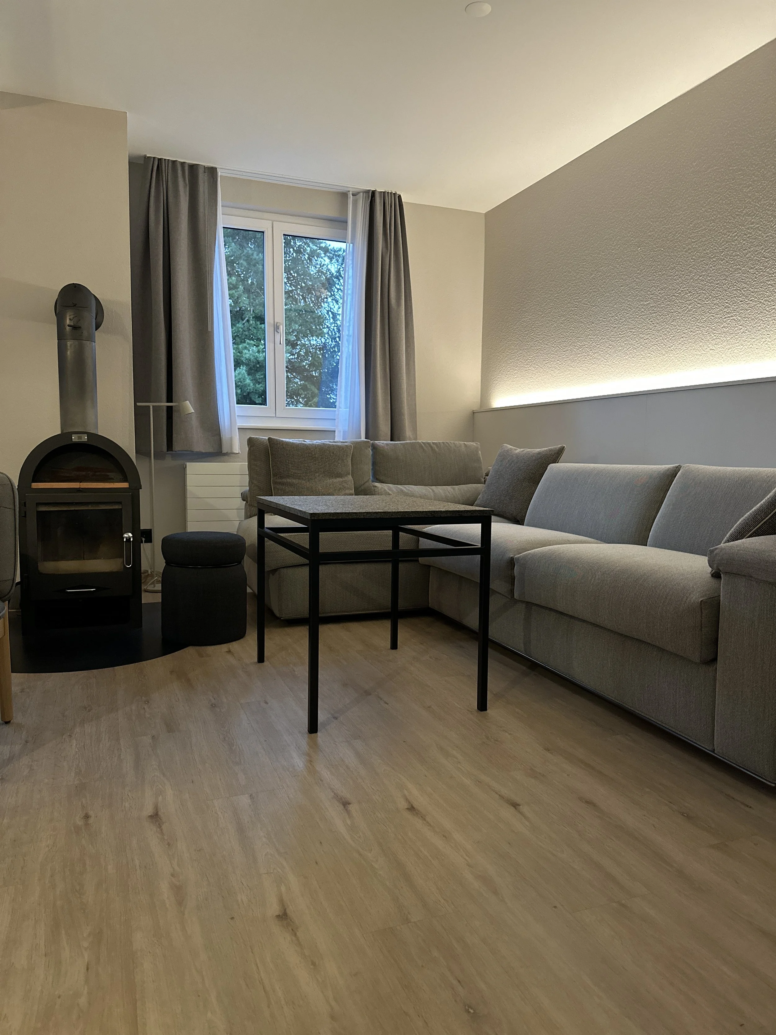 Die frisch renovierten Ferienwohnungen im schlichten skandinavischen Look bieten vieles, was es für eine Woche Familienurlaub braucht. Unsere Reka-Ferienwohnung für 4 Personen hatte ein Zimmer mit einem Doppelbett und ein weiteres Zimmer mit 2 Einzelbetten. Die Küche war gut ausgestattet, so dass wir problemlos selbst kochen konnten. Das geräumige Wohnzimmer mit Cheminée sorgt für eine gemütliche Atmosphäre. Sowohl im Wohn- wie auch im Schlafzimmer findet sich ein Fernseher. Zwei WCs, davon eins mit grosser Dusche und Brünneli als Badezimmer, erleichterte den Morgen Ansturm. Die Wohnung verfügt ausserdem über einen überdachten Balkon.