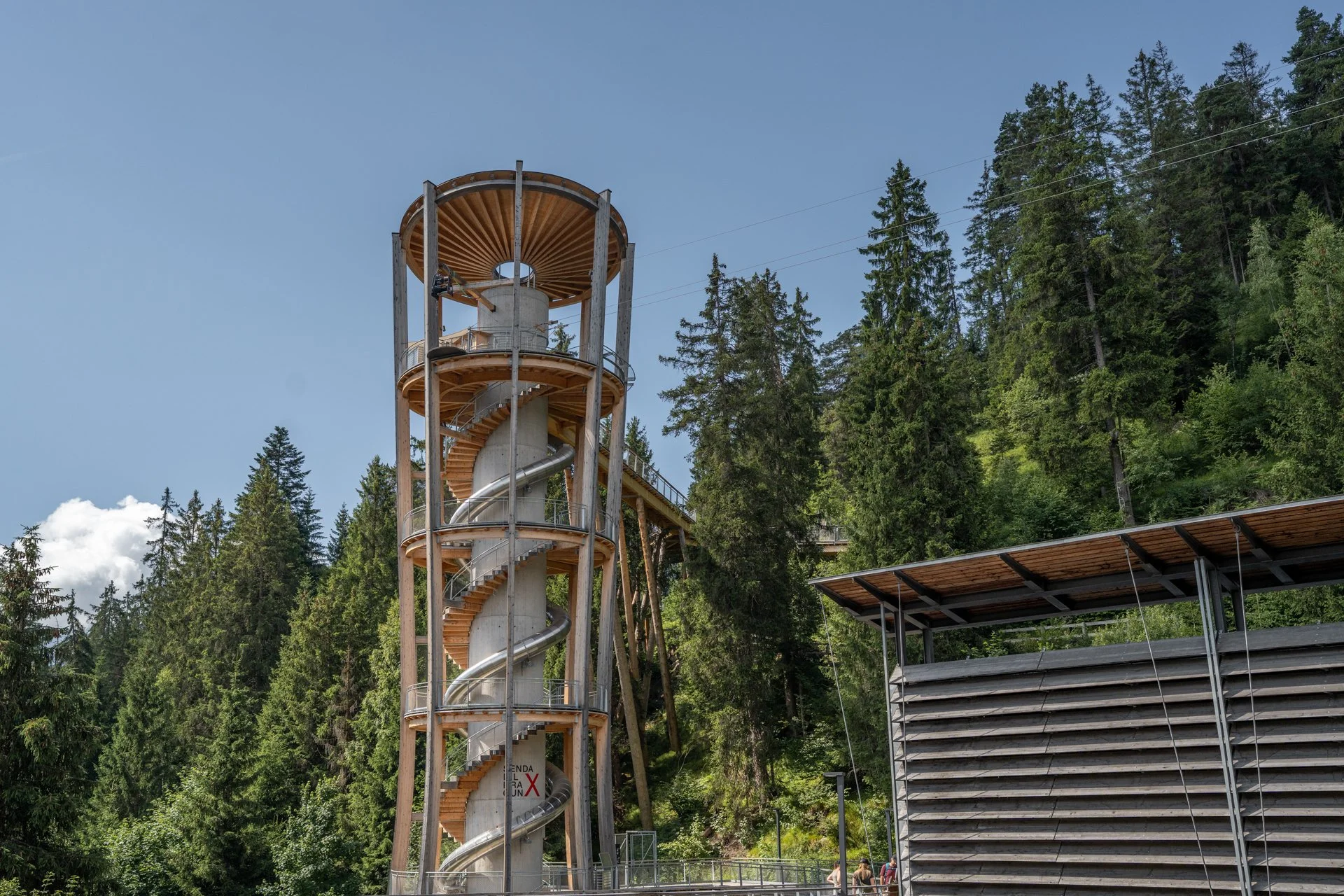 Entdecke den längsten Baumwipfelpfad der Welt in Laax, Schweiz! Der 1,5 km lange Steg bietet atemberaubende Ausblicke, interaktive Erlebnisse, eine Rutschbahn, Kugelbahn-Spielstationen und mehr. Ideal für die ganze Familie – kinderwagentauglich und ganzjährig geöffnet.